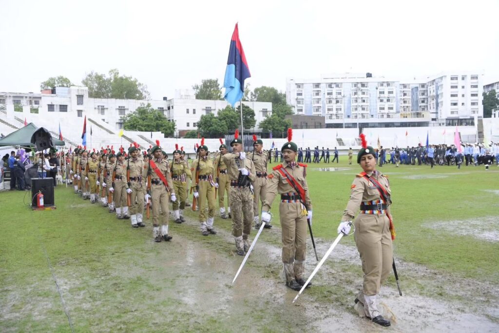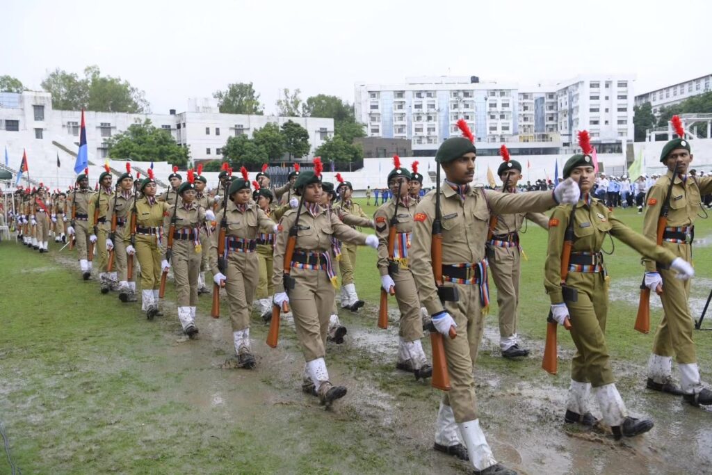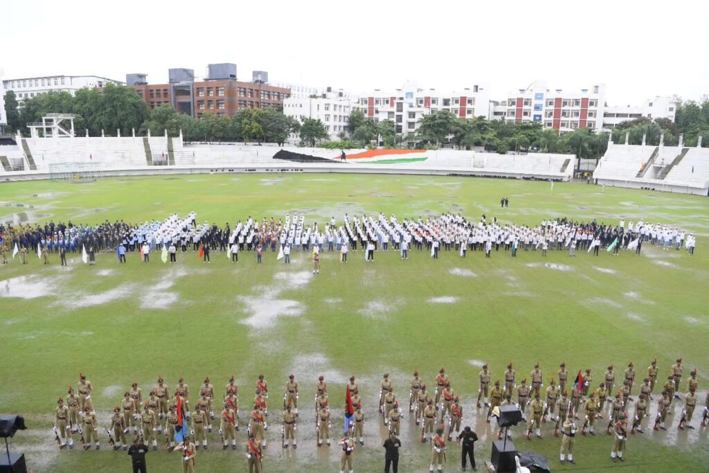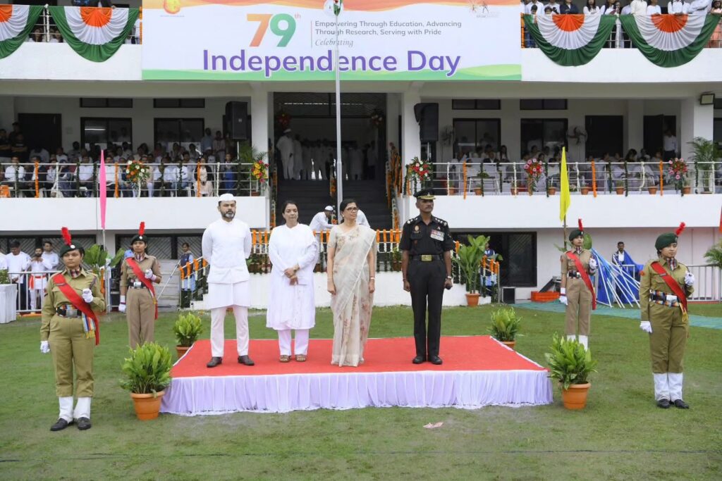 The Indian Independence Day was celebrated with great enthusiasm at MGM Stadium. The national flag was hoisted by Mrs. Nisha Jain, Director of Anubhuti International School, followed by her address. A parade and cultural programs marked the occasion, with the best contingent receiving an award. The event was graced by Shri Ankushrao Kadam, Mrs. Anuradha Tai Kadam, Dr. Vilas Sapkal, along with Directors, Principals, faculty, staff, and students of MGM Schools.